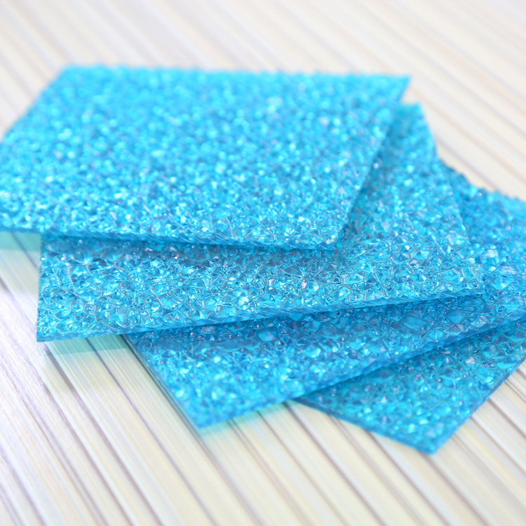 PC顆粒板的力學(xué)性能、電學(xué)性能、阻燃性能、抗紫外線能力等與耐力板是一致的,不同的主要是外觀形態(tài)和光學(xué)性能,通過自身表面凹凸形狀,凹凸密度及大小使透過板材的光線產(chǎn)生散射、透射不同而達(dá)到模糊效果,同時使光線柔和,減少光污染。顆粒板表面耐刮花,美觀大方適合各種風(fēng)格設(shè)計。